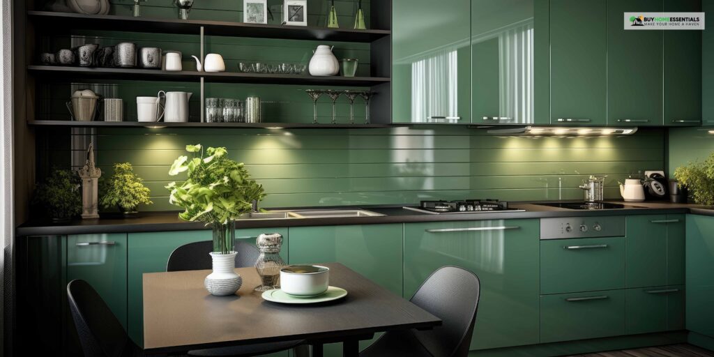 An earthy green kitchen with black granite countertops will bring the beauty and tranquility of nature into your kitchen. This combination gives you a sense of freshness and harmony, creating a space that feels grounded and serene.